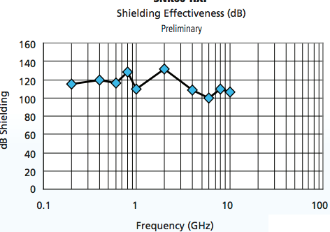 可以發現,3mm后的純鎂性能與2mm純銅和純鎳相比,在低頻段純鎂略低,而當頻率高于600MHz時,純棉的屏蔽效能更高。純鎂密度為1.738g/m3,銅的密度為8.89g/m3,捏的密度為8.908g/m3,那么3mm純鎂的質量只有2mm純銅、純鎳的29%。因此在相同的屏蔽效果的情況下,純鎂具有更輕的優點,從這個角度講,純鎂具有更好的屏蔽效能。